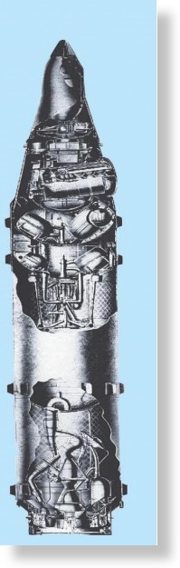 Le guidage était entièrement passif, avec un calculateur numérique embarqué. Les données de tir initiales sont fournées soit par le système de désignation d'objectifs satellitaire Legenda ou aéronautique Uspekh. La précision obtenue à bord avec le système Kasatka était de l'ordre de 25 km. La cible étant mobile, et pouvant se déplacer de 150 km pendant la durée du vol, le guidage devait comporter deux corrections de trajectoire, l'une pendant la section extra-atmosphérique et une seconde dans l'atmosphère par une double activation du propulseur du deuxième étage. Ce qui imposait une tête de faible puissance. Cette option est finalement abandonnée, dans une option purement balistique avec une tête de forte puissance.