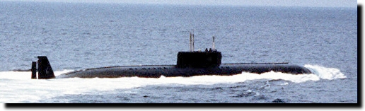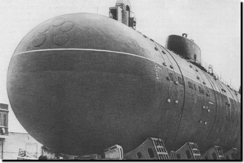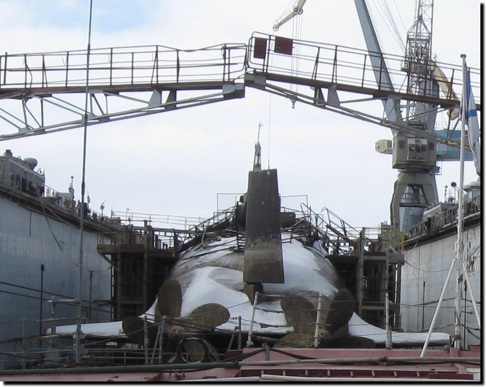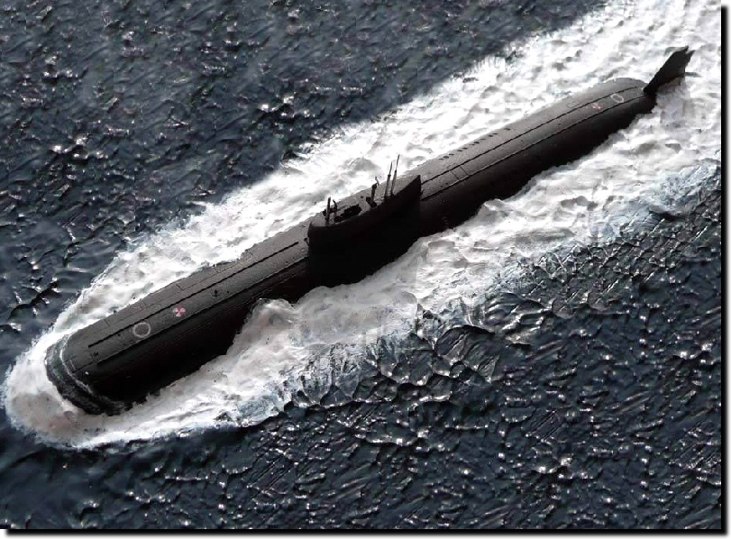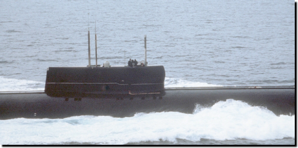 Attention, la dérive surmontée d'un pod appartient à un sous-marin en arrière plan (671 RT ou RTM)