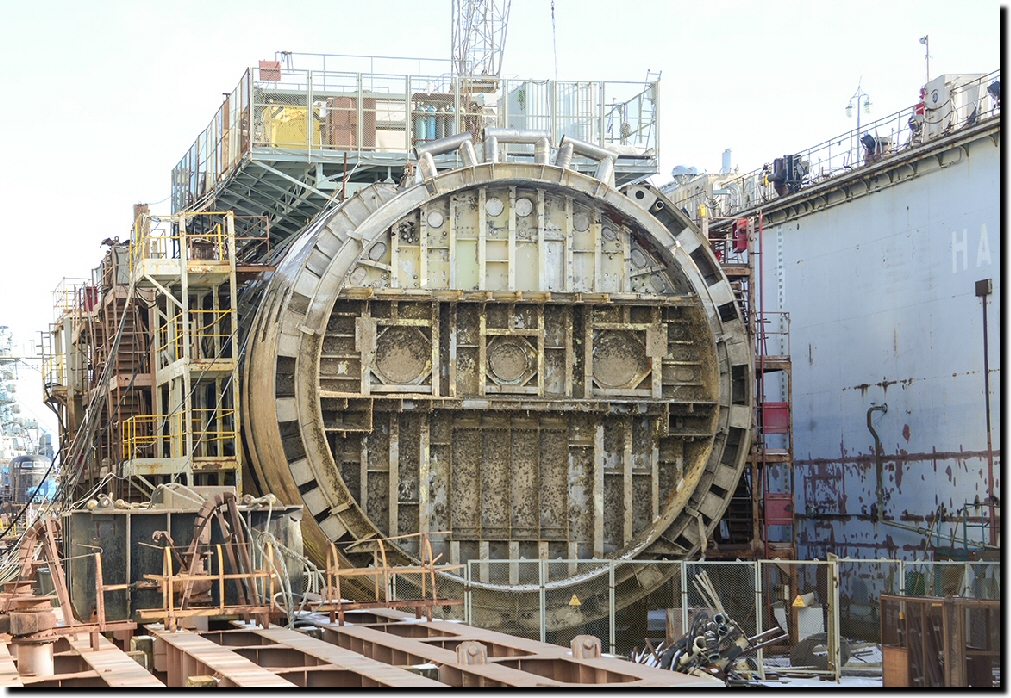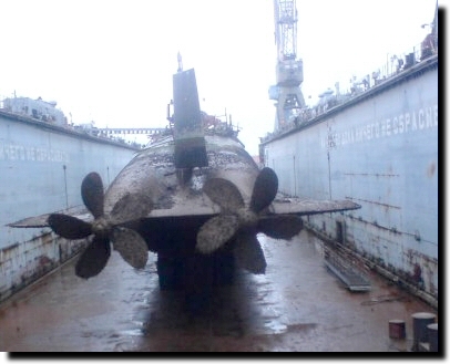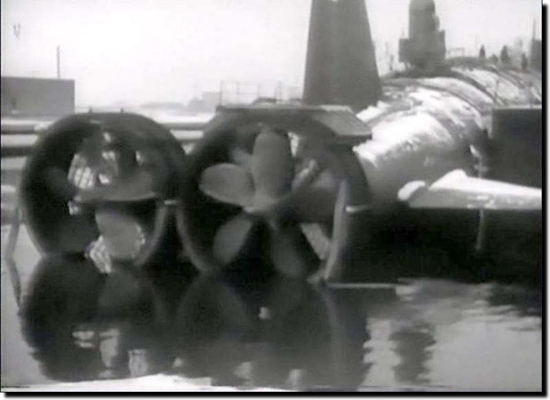 Je n'arrive pas à savoir s'il s'agit d'essais d'hélices, ou simplement de protections autour des ces hélices lors de mises à l'eau