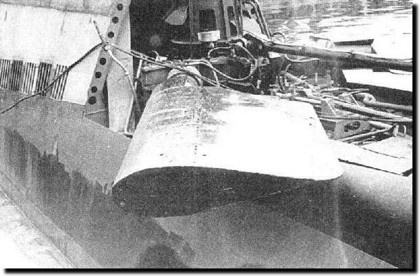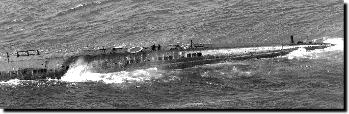 L'arrière du B-37 surnageant après l'explosion de torpilles à l'avant