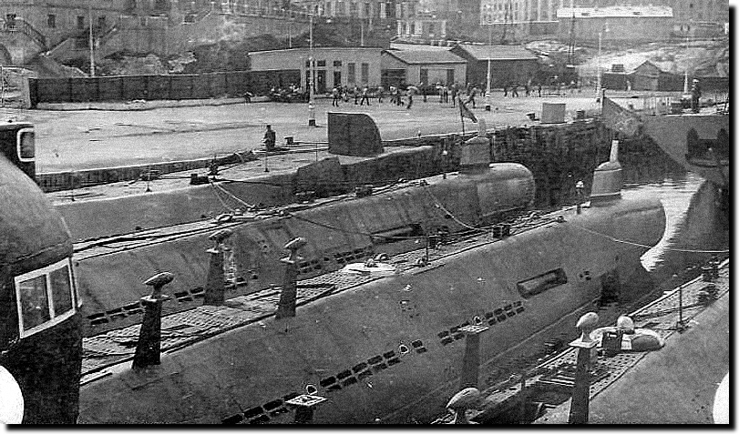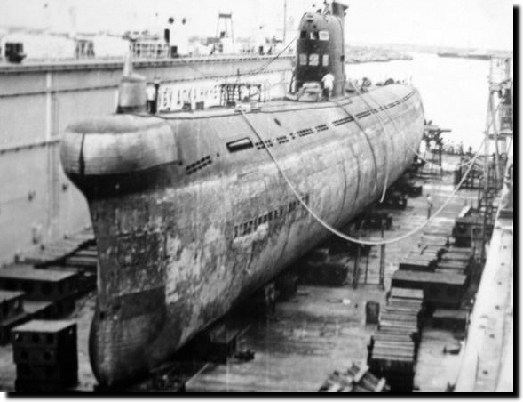 Le B-833 sur dock, à Dahlak, alors en Éthiopie (auj en Érythrée)