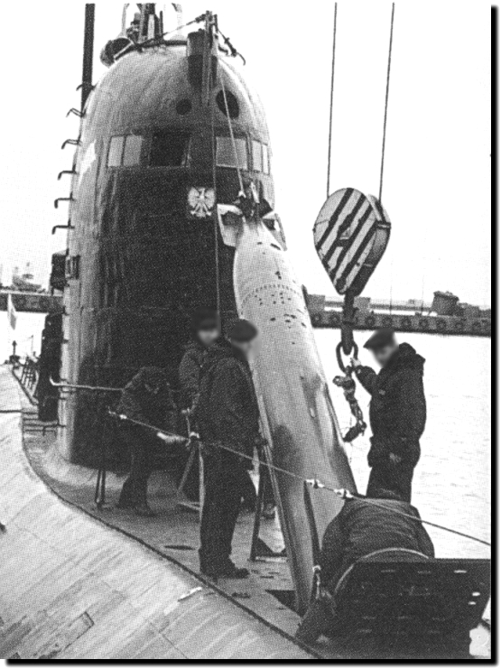 Le conduit d'embarquement des torpilles, débarrassé des carénages et du panneau