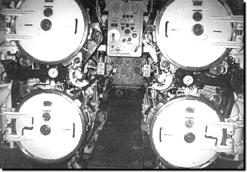 Les tubes lance-torpilles arrière, vus de l'intérieur