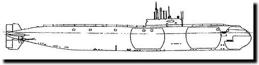 Les autres moyens électroniques étaient le répondeur IFF Nikhrom-KM [une autre première pour les sous-marins soviétiques], le radar de veille surface Albatros et l'intercepteur radar Zaliv-P.