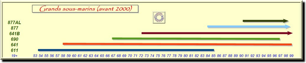 Pour le diagramme ci dessous, la flèche vers la droite signifie que l'emploi opérationnel de sous-marins du projet s'est poursuivi après l'année 1999.
