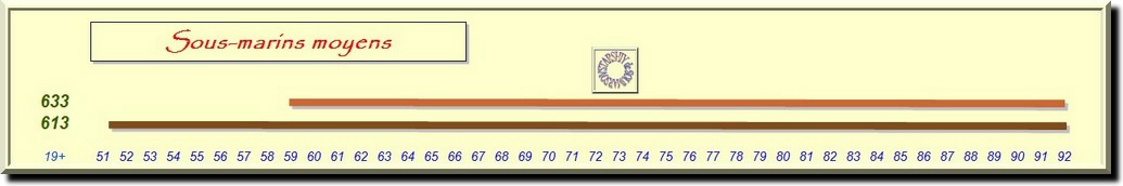 Il faut attendre 1951 pour que des unités conçues en fin du deuxième conflit mondial, ou après, apparaissent (classe 613 en 1951, 611 en 1953 ...).