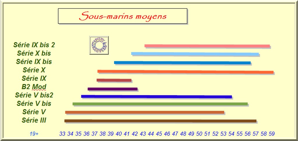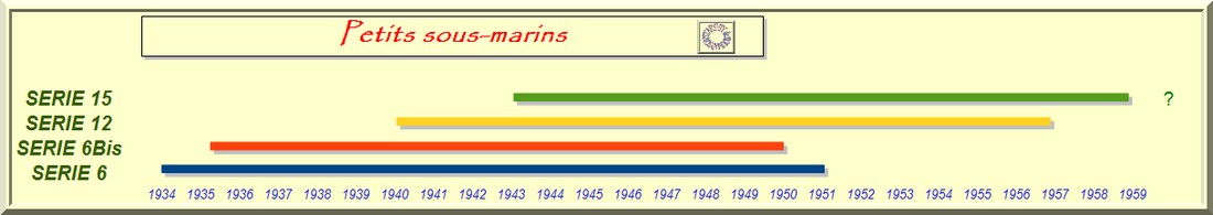 Le diagramme qui suit donne une idée de la durée du service opérationnel des différents projets. La mise en réserve du dernier sous-marin de la Série 15 est sujette à caution, ce qui explique le point d'interrogation. Les dates de mise à la casse peuvent être beaucoup plus tardives, certains sous-marins ayant en effet été transformés en station d'entraînement à la lutte contre les sinistres ou en station de rechargement de batteries.