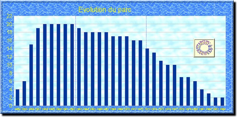L'évolution du parc en ligne dans le temps, toutes versions confondues ne dépassera jamais 20 unités, surtout en raison de modifications et de changement de rôle.